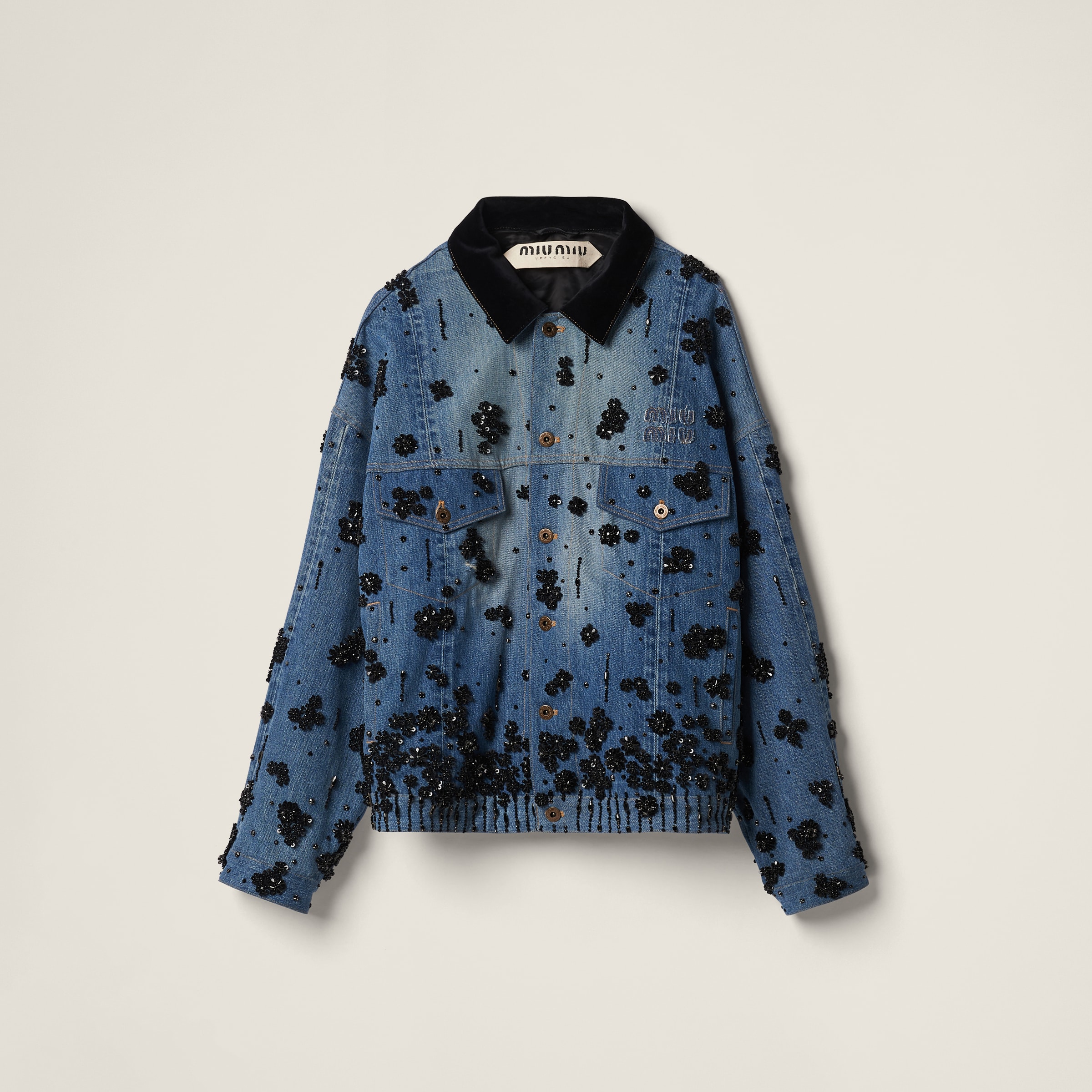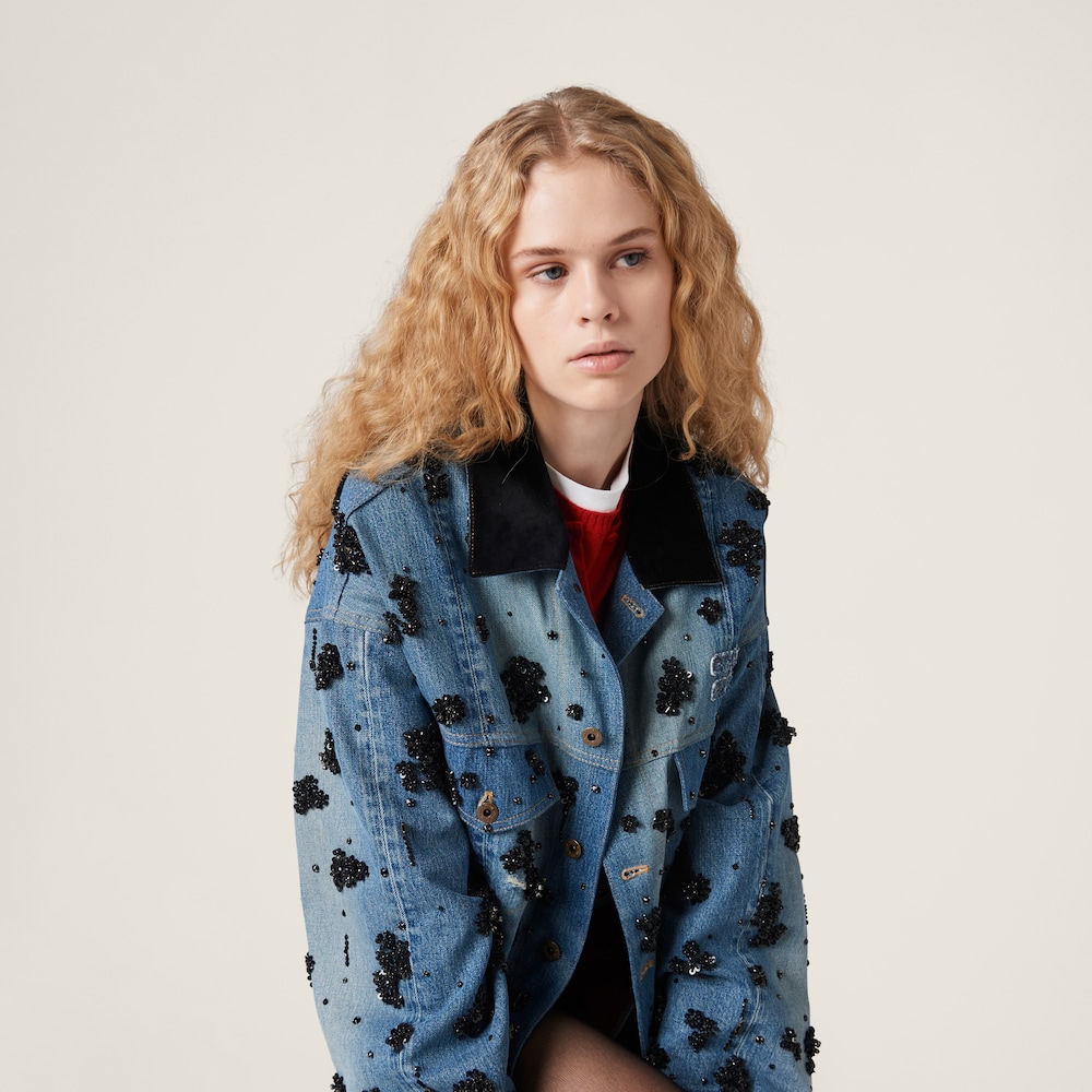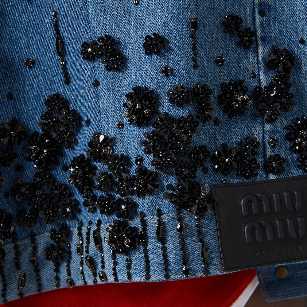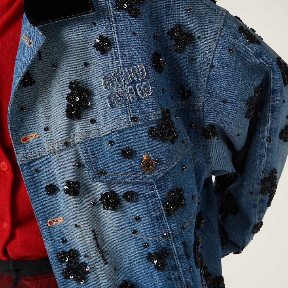 Embellished denim trucker jacket