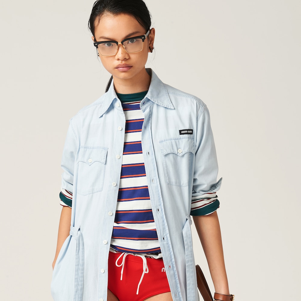 Denim and poplin zipper dress